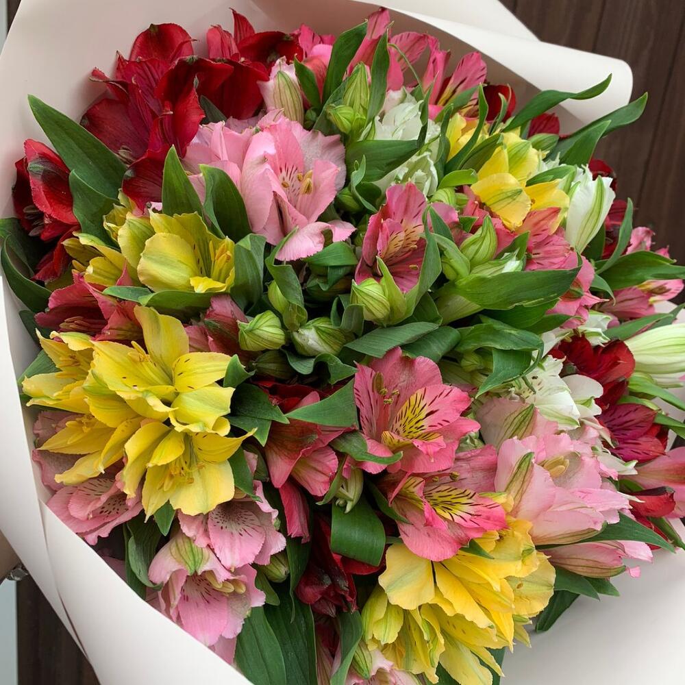 Альстромерия – 21 шт.Упаковка – 1 шт.Лента атласная – 1 шт.
