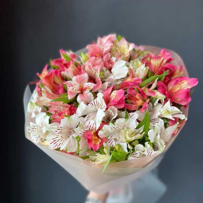 Альстромерия – 17 шт.Атласная лента – 1 шт.декоративная упаковка – 1 шт.
