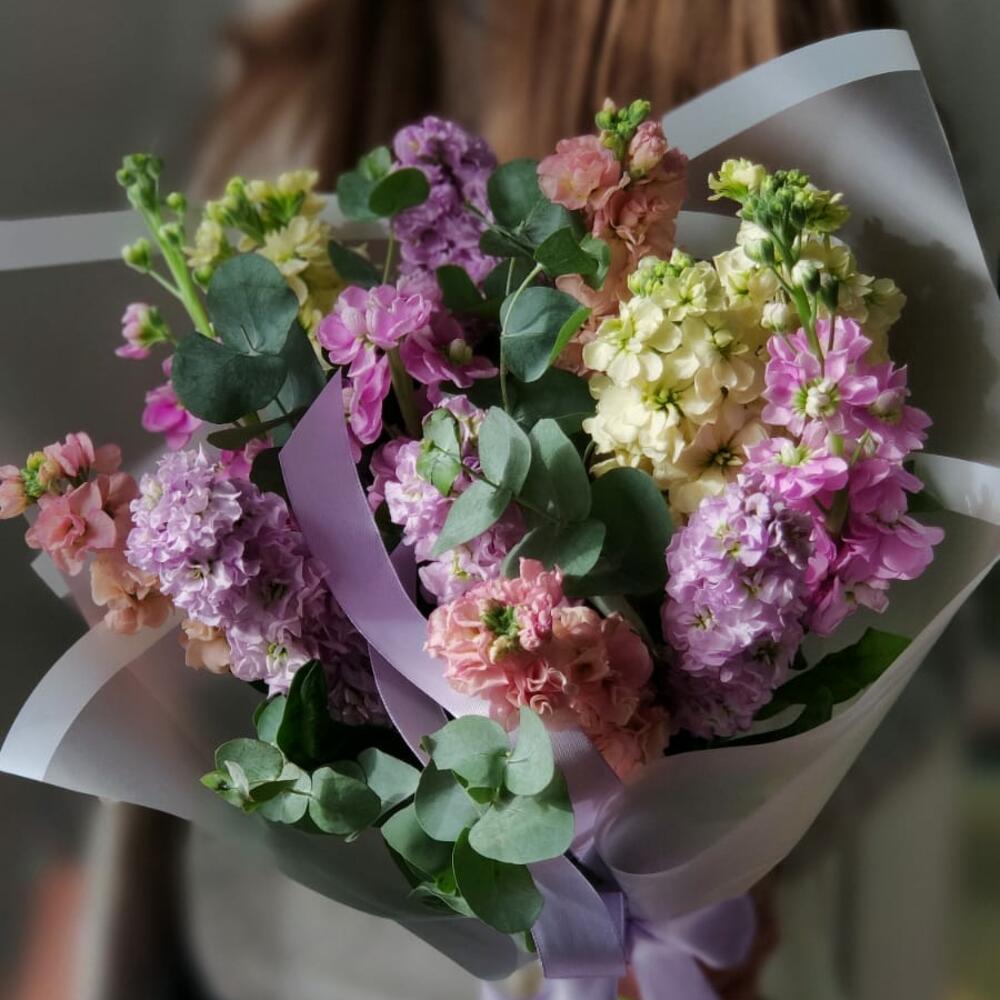Маттиола – 13 шт.Эвкалипт – 1 шт.Упаковка – 1 шт.