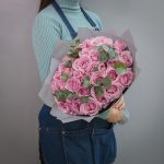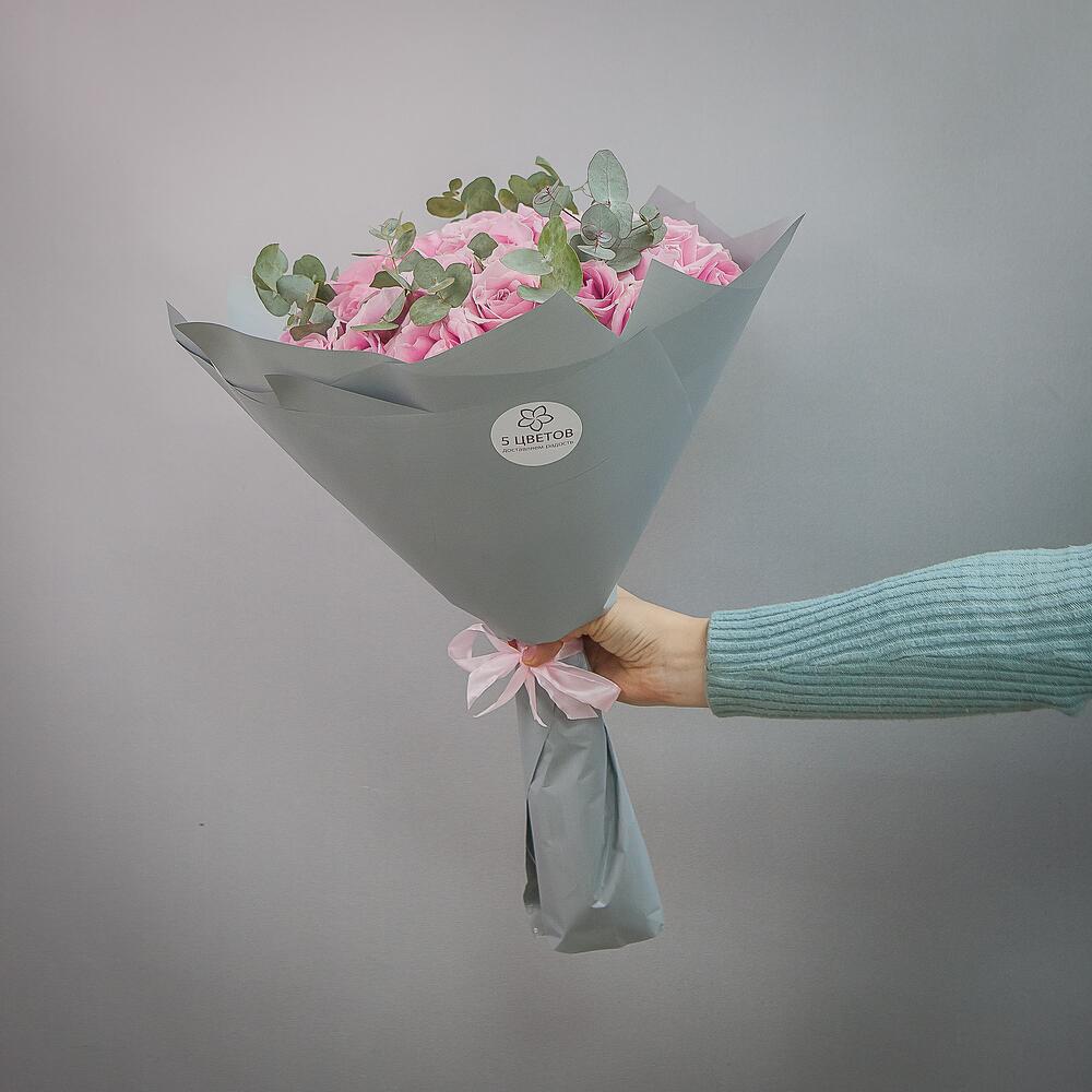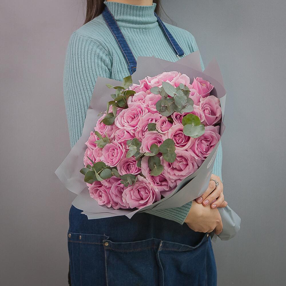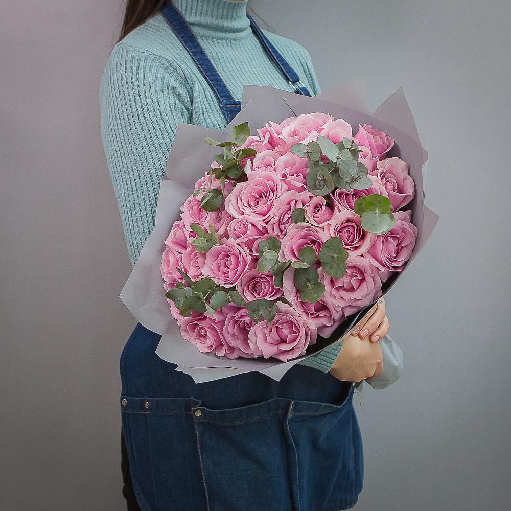 Букет из 35 розовых роз с эвкалиптом