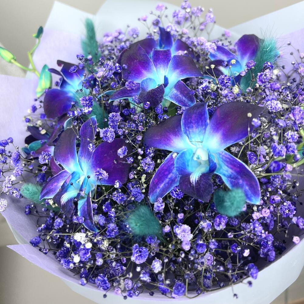 Ты мой космос ⭐ букет из экзотичных орхидей с гипсофилой