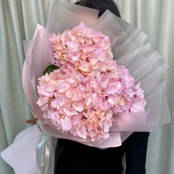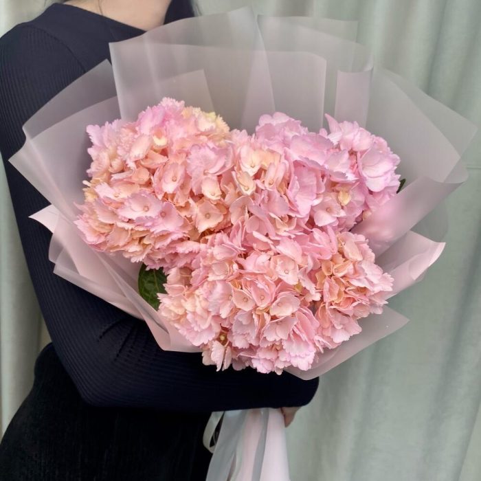 Розовый букет из 3 гортензий «Любовь»