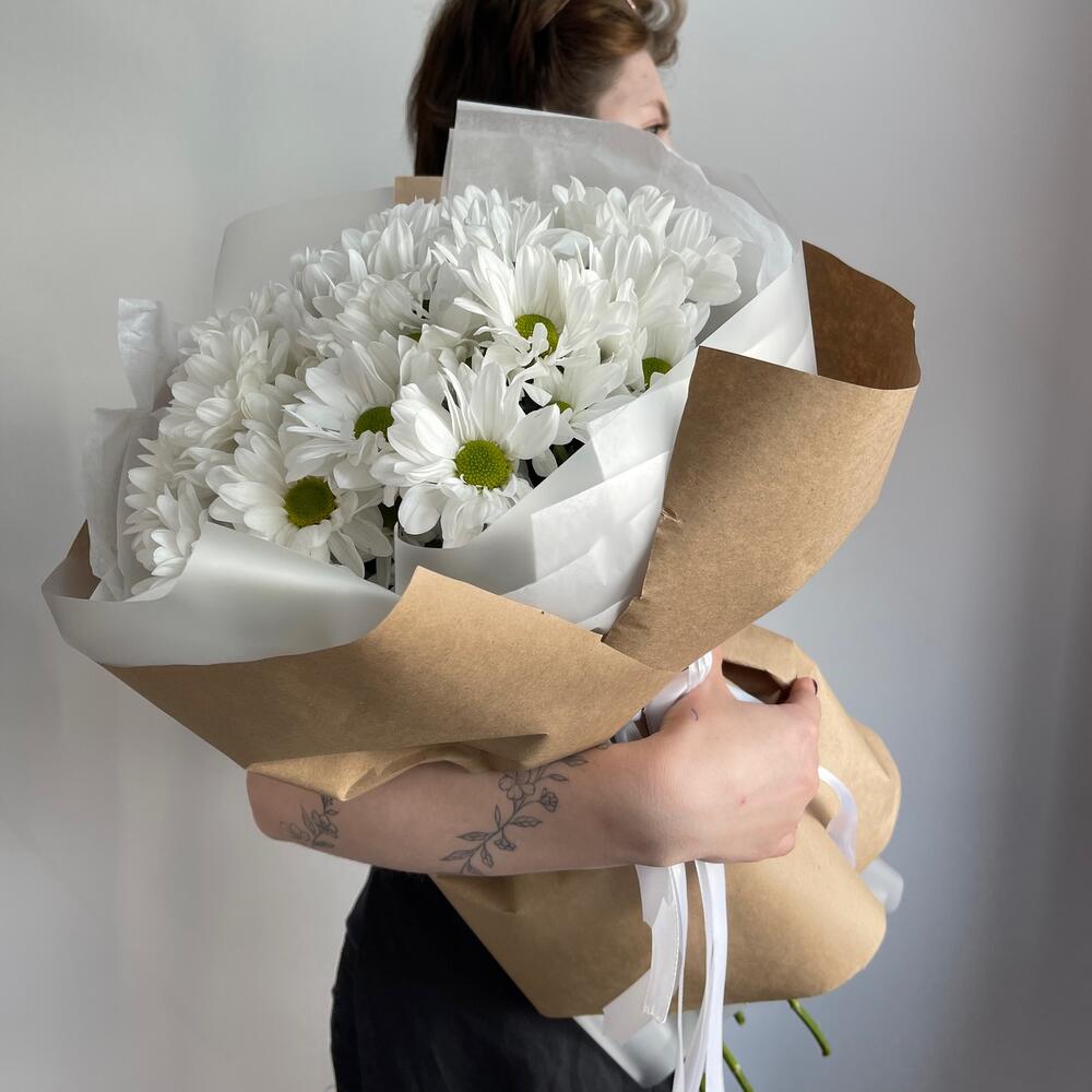 Букет кустовых хризантем в крафте
