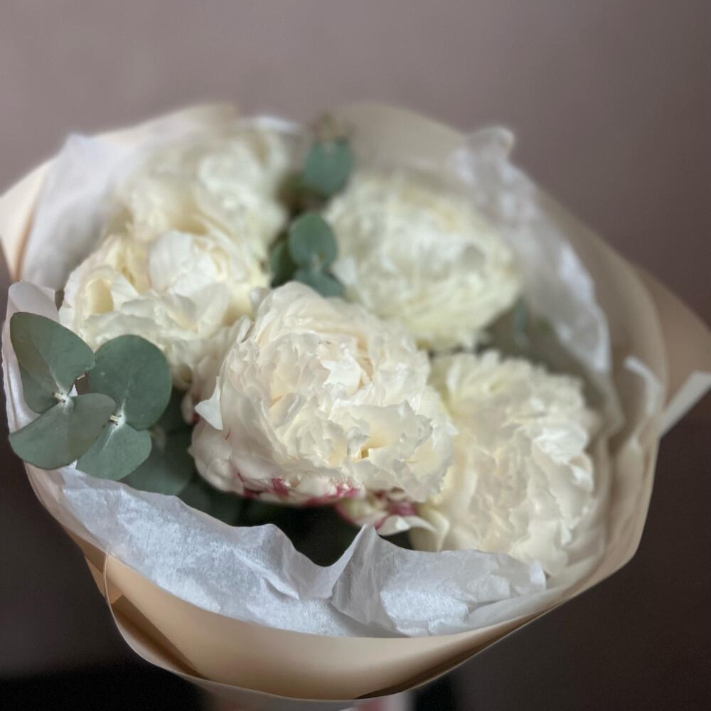 Букет из 5 белых пионов