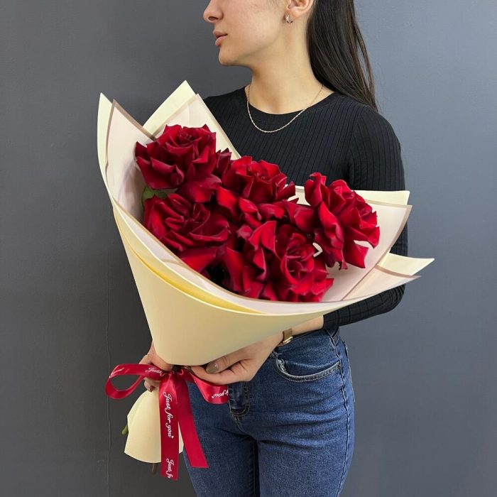5 красных французских роз