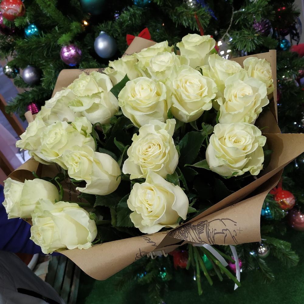 Роза Эквадор – 21 шт.Крафт – 1 шт.Лента атласная – 1 шт.