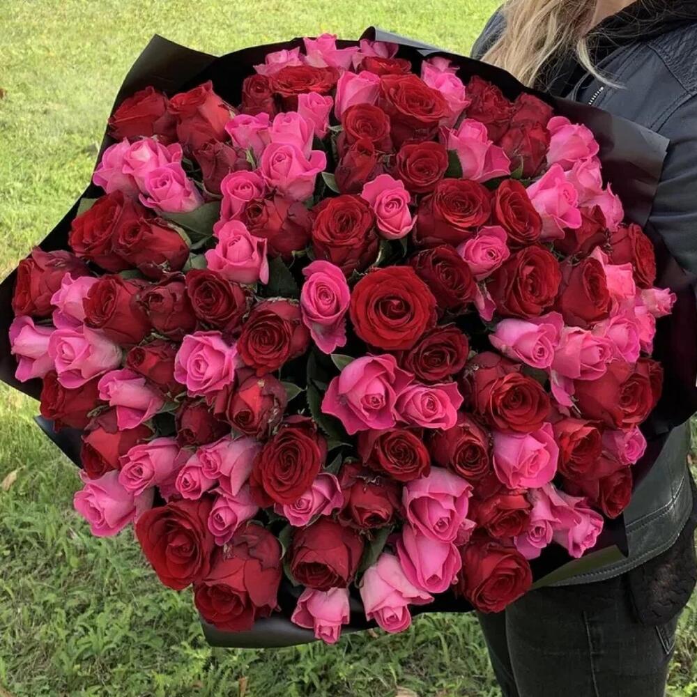 Букет из 101 розы микс 35-40 см (Кения) в упаковке