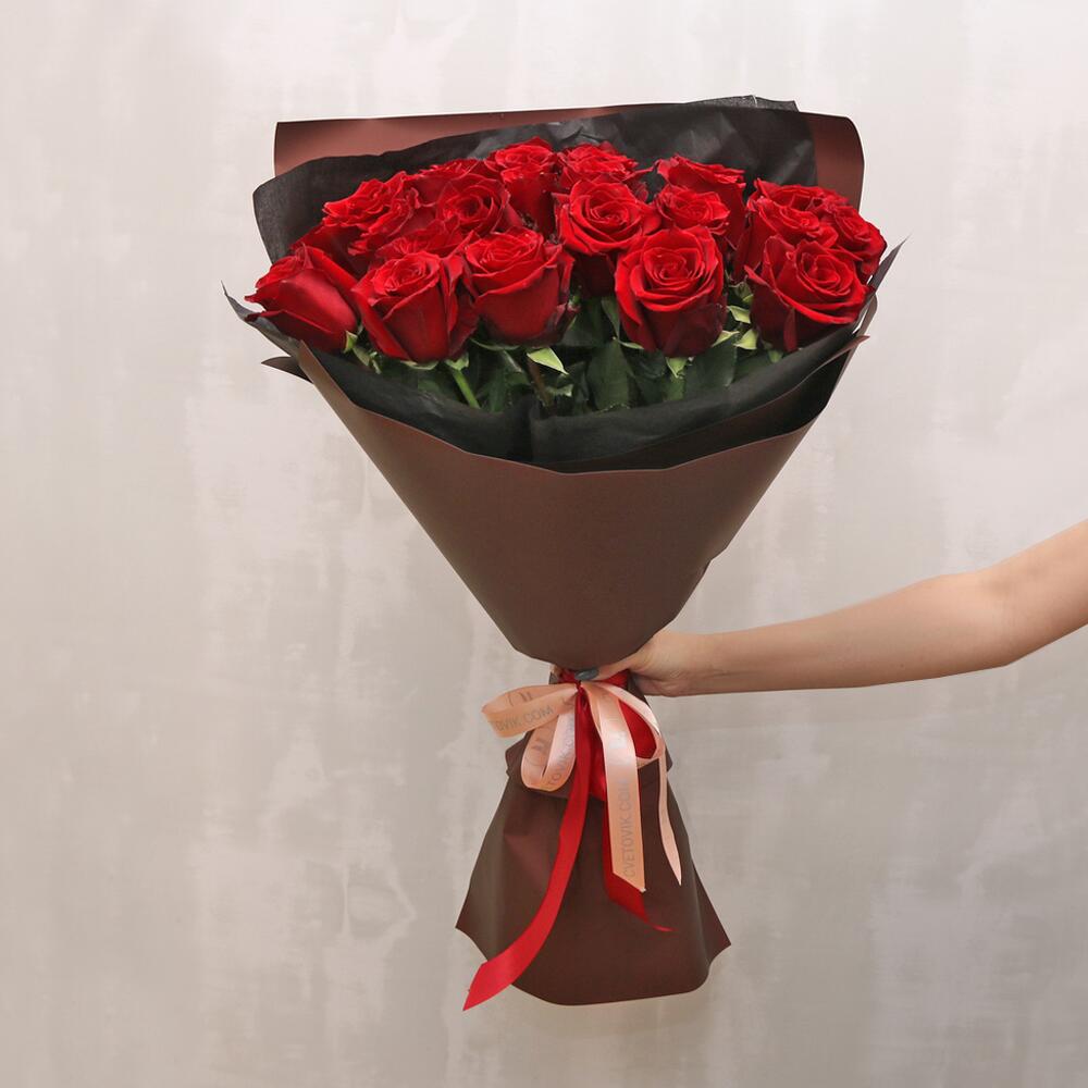 Букет из 25 красных роз premium 60-70 см (Эквадор) в стильной упаковке