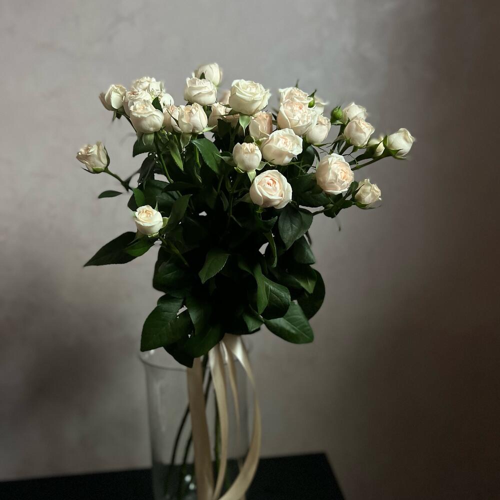 Роза кустовая – 5 шт.Атласная лента – 1 шт.