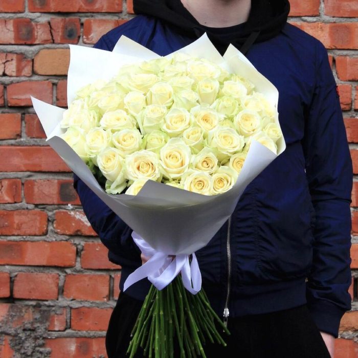 Букет из 51 белой розы (Кения) 30 см