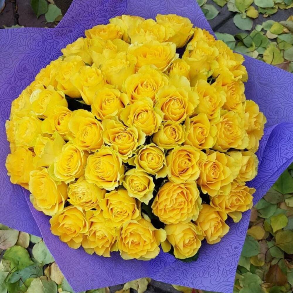 Роза желтая 50 см – 51 шт.упаковка подарочная – 1 шт.