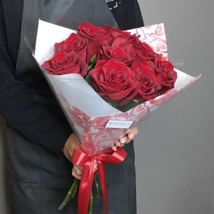 Букет из 9 красных роз в стильной упаковке