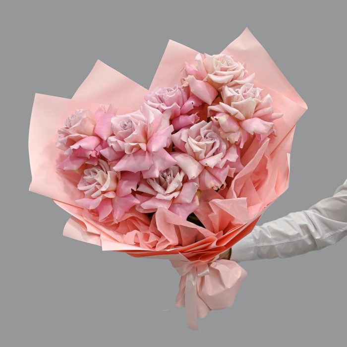 Букет из 9 розовых роз в крафтовой упаковке