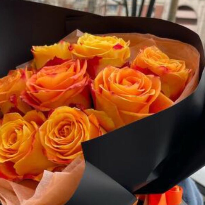 Букет из 9-ти роз в дизайнерском оформлении