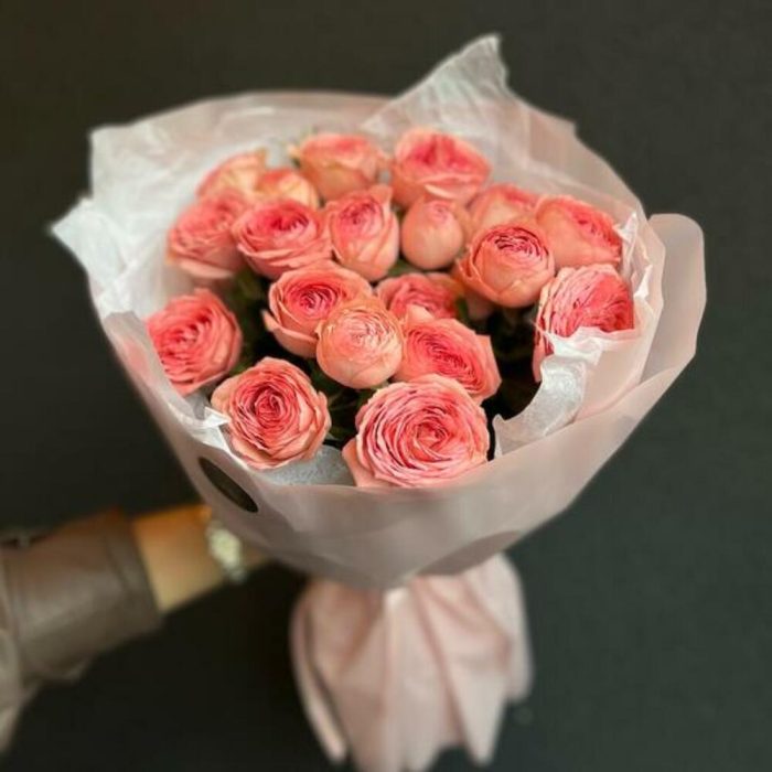 Кустовая пионовидная роза – 5 шт.декоративная укпаковка – 1 шт.Атласная лента – 1 шт.