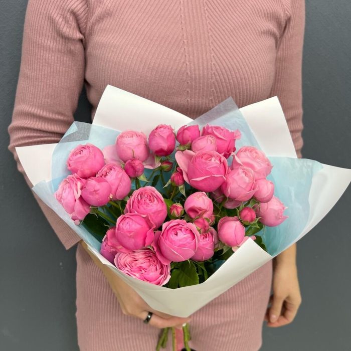 Тишью – 2 шт.Роза пионовидная кустовая – 5 шт.Пленка матовая – 2 шт.
