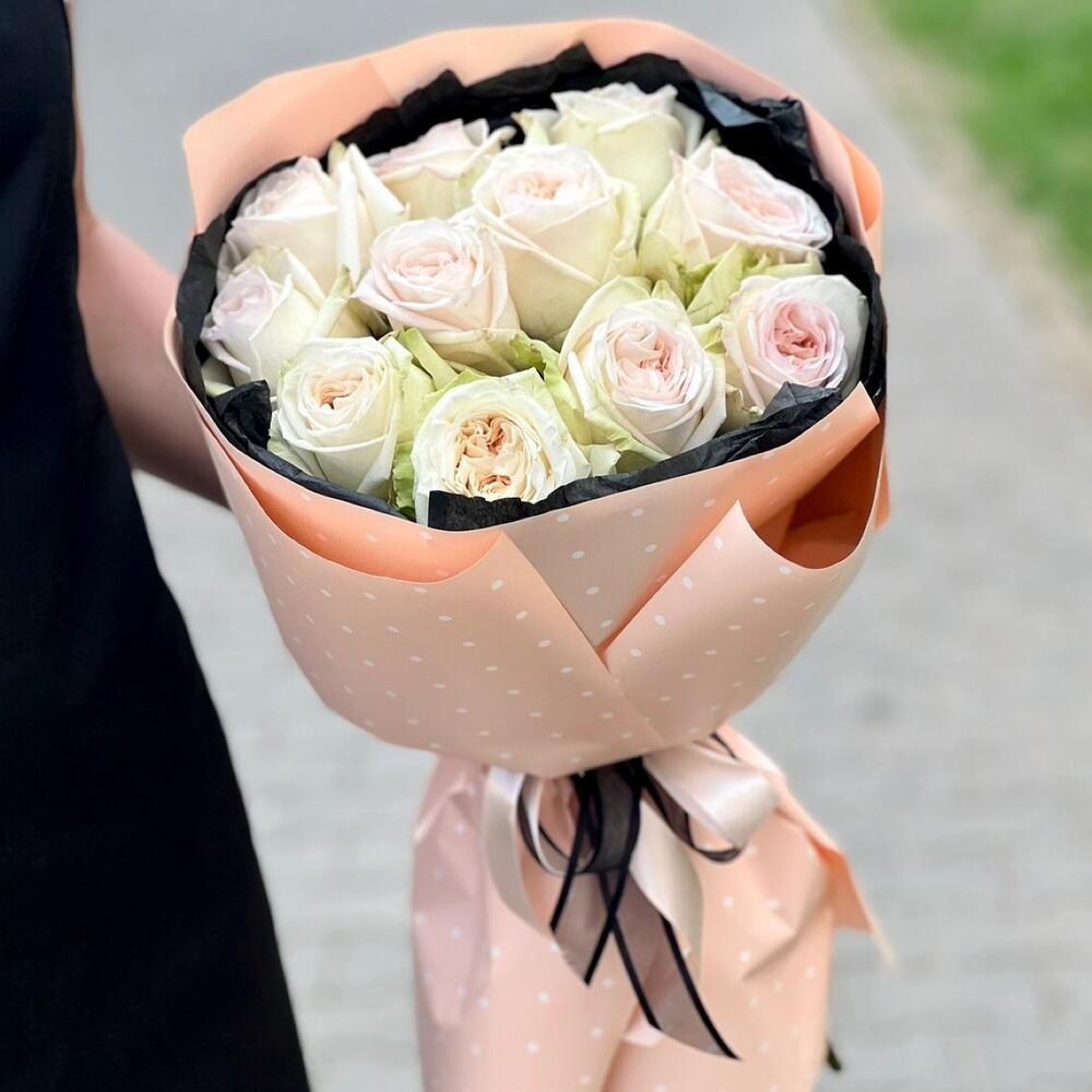 Белые розы в крафте