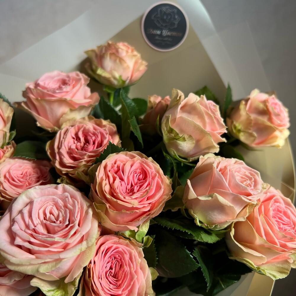 Кустовая роза – 5 шт.декоративная упаковка – 1 шт.Атласная лента – 1 шт.