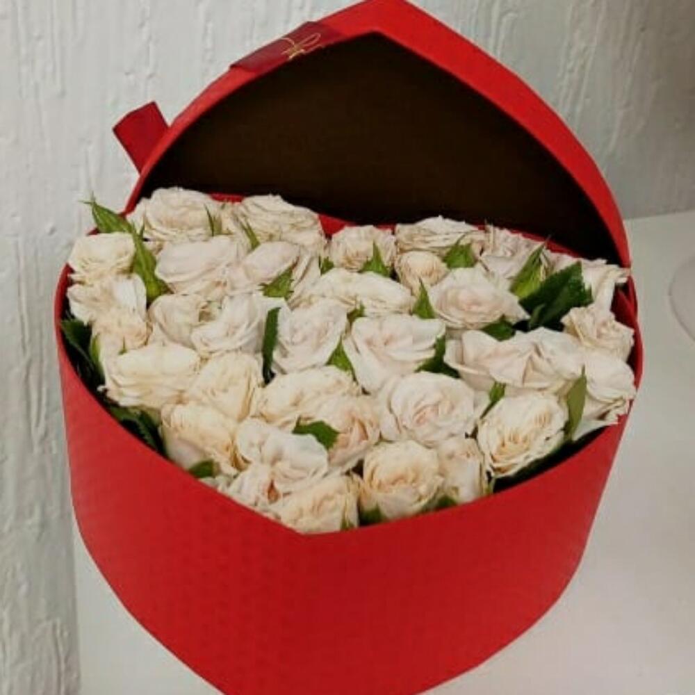 “Сладкое сердце ” – цветочная композиция с сладостями в коробке “Сердце”