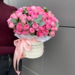 Коробка шляпная – 1 шт. Пионовидная кустовая роза – 11 шт. Губка флористическая – 1 шт.