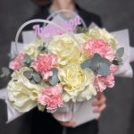 Гвоздики, Кустовые розы, Пионовидные розы, Розы