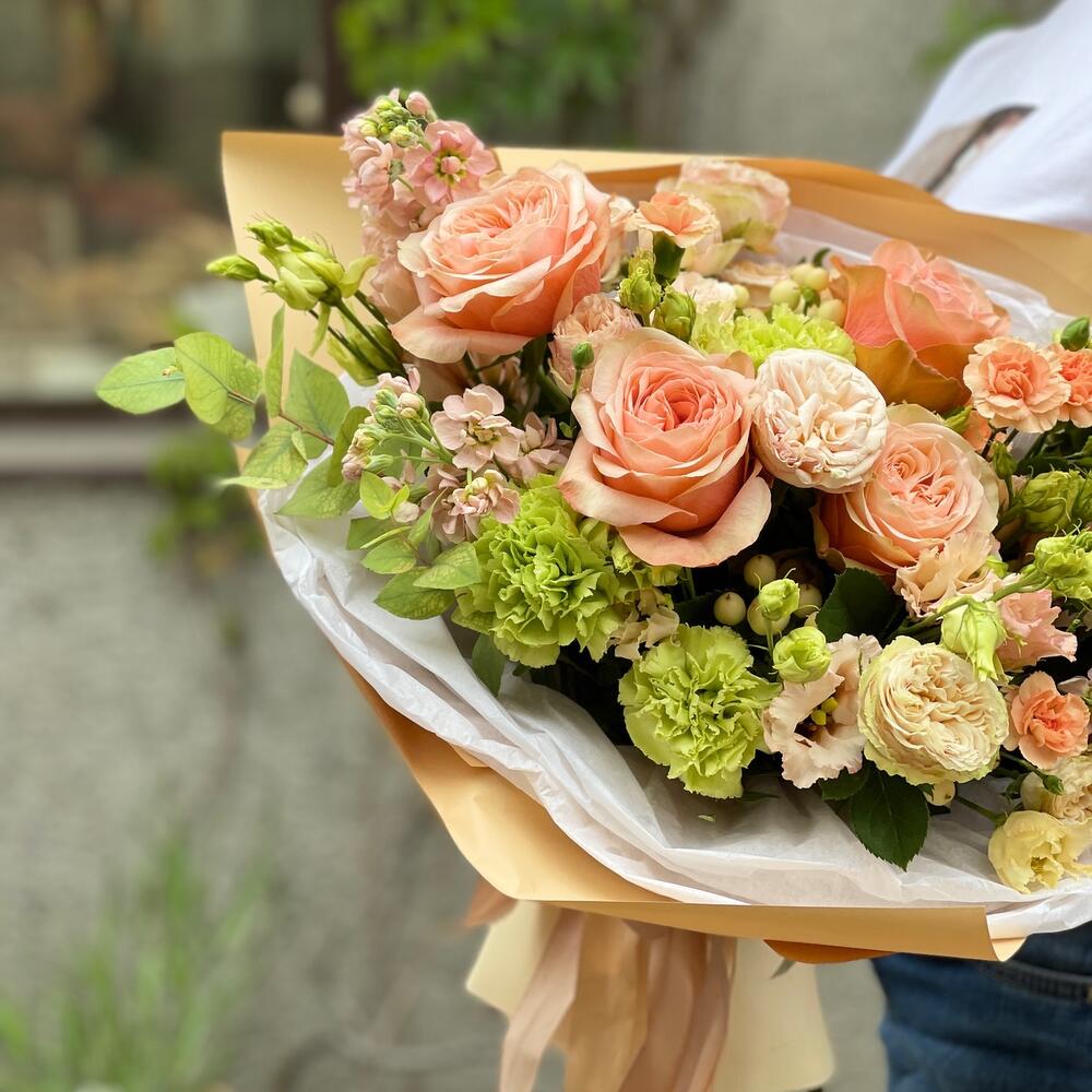 Гвоздики, Кустовые розы, Пионовидные розы, Розы
