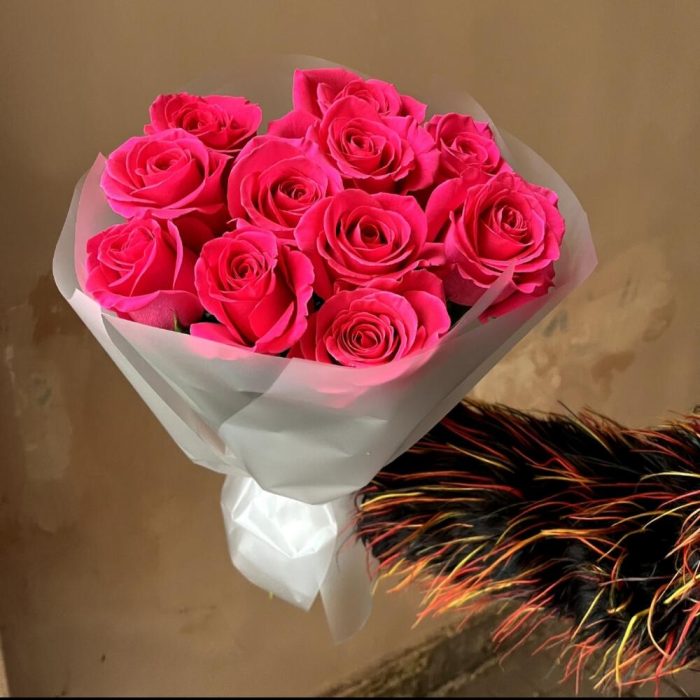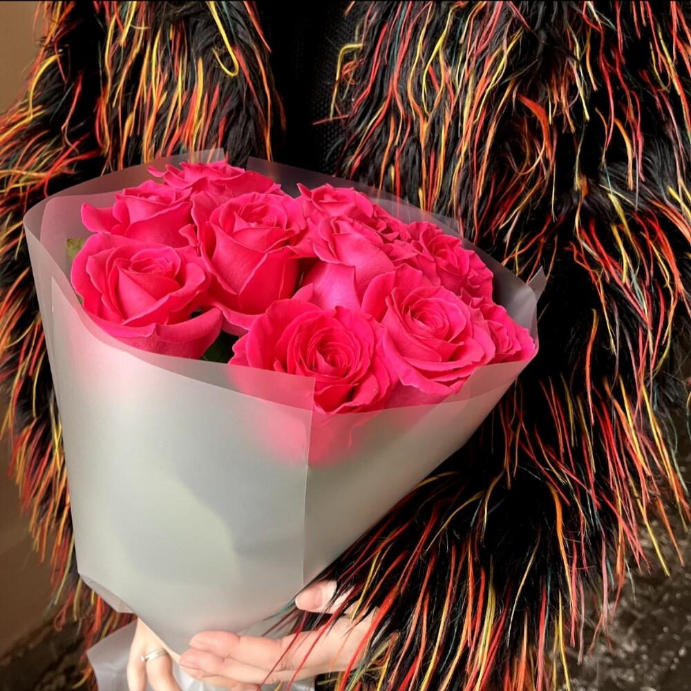 Июль: 11 малиновых роз сорта Пинк Флойд