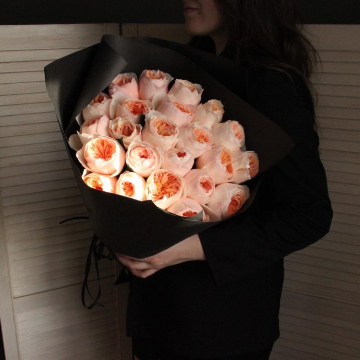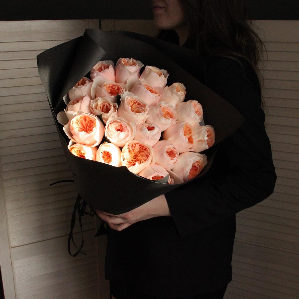 Роза пионовидная – 23 шт.Бумага – 3 шт.Лента – 2 шт.