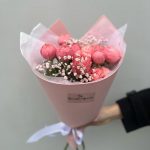 Клубничное мороженое (пионовидная роза и гипсофила)
