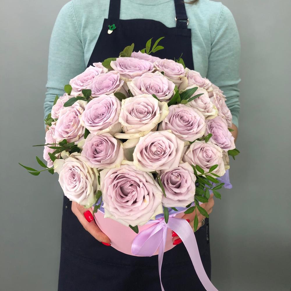 Роза – 29 шт.Шляпная коробка – 1 шт.Пиафлор (оазис) – 1 шт.