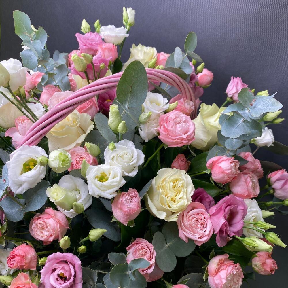 Корзина из пион роз и лизиантуса «Lady s»