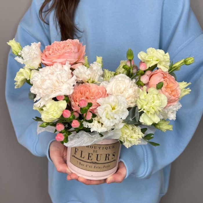Нежная композиция в кашпо