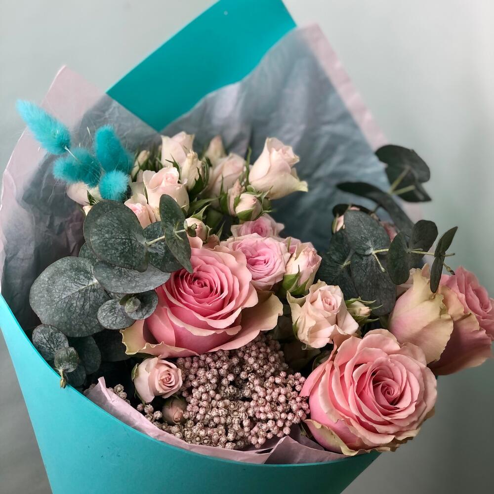 Гвоздики, Лизиантусы, Розы