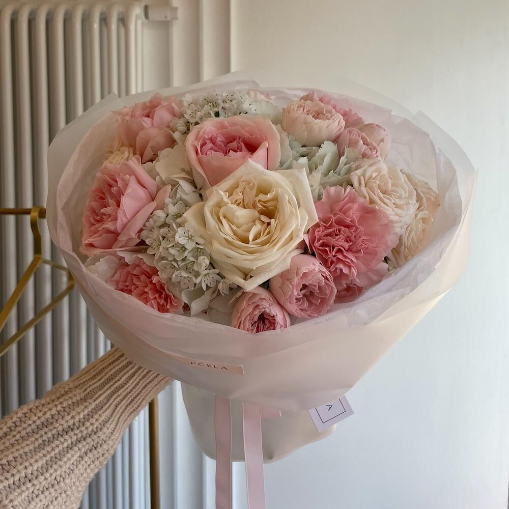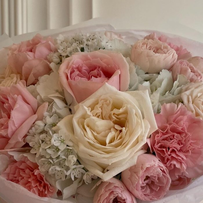 Гвоздики, Кустовые розы, Лизиантусы, Пионовидные розы, Розы