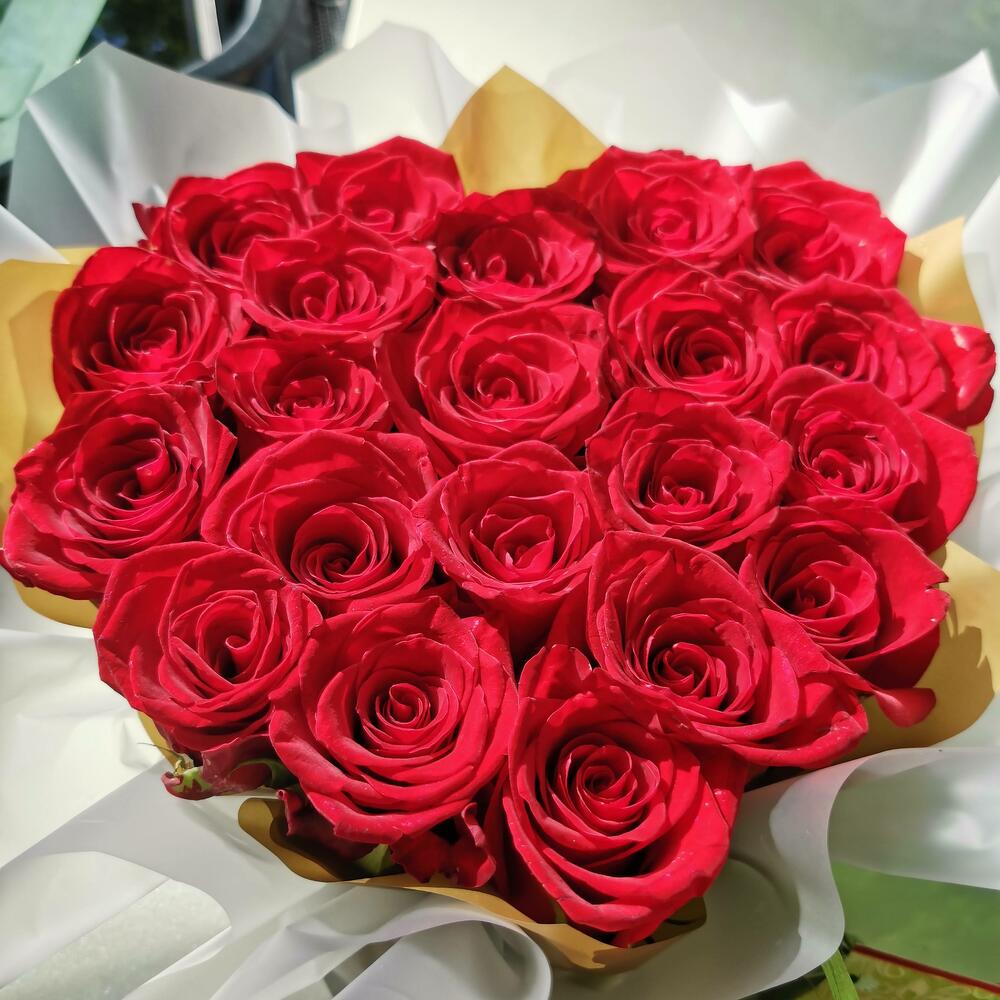 Красное сердце из 21 крупной красной свежей розы не оставит вашу принцессу равнодушной в праздник всех влюбленных и на день рожедния.