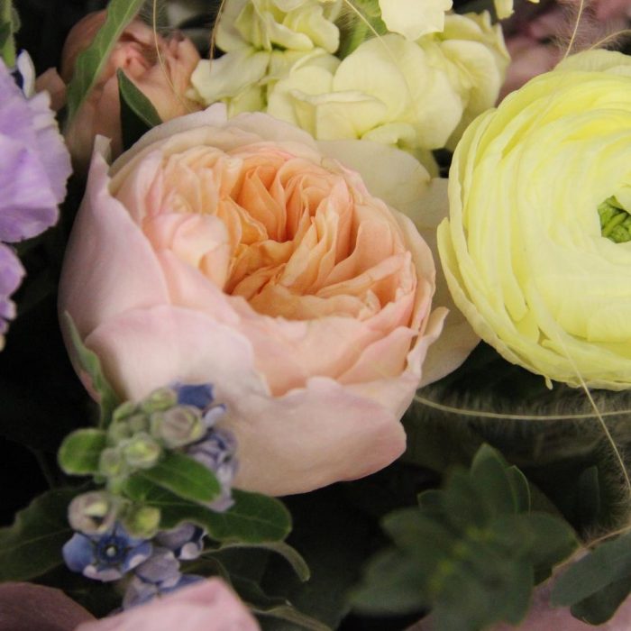 Авторский букет с ранункулюсами, пионовидными розами, ароматными маттиолами, диантусом, твидией, лизиантусом и эвкалиптом.Ширина букета около 70 сантиметров, высота букета около 60 сантиметров.Стильное цветочное решение для любого случая.Отличный выбор для подарка … Показать ещёна день всех влюблённых, 14 февраля.