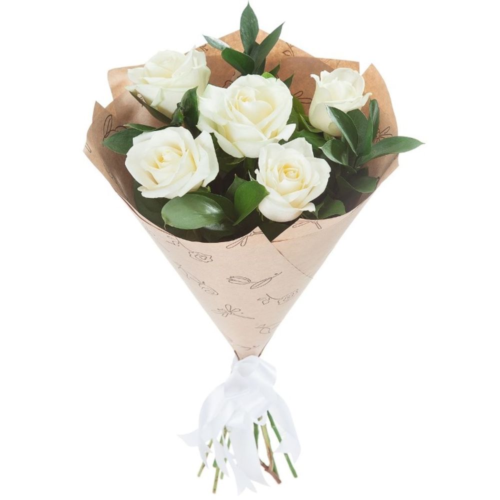 rose white – 5 шт. Kraft – 1 шт. ribbon satin white – 1 шт.