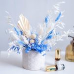 Скабиоза – 3 шт.Лагурус – 2 шт.Кашпо керамическое – 1 шт.Лист пальмы – 1 шт.Дизайнерская упаковка – 1 шт.гортензия стабилизированная – 1 шт.сорго – 1 шт.мох ягель стабилизированный – 1 шт.лимониум стабилизированный – 1 шт.дикий овес – 1 шт.