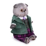 Мягкая игрушка Кот Басик в зеленом бархатном пиджаке 22см
